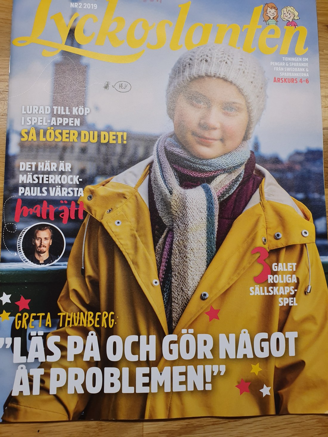 Ett annat av barnen fick Lyckoslanten utdelad i klassen och som av en händelse pryddes omslaget av Greta som uppmanar till ”att läsa på och göra något åt problemen”. I artikeln indikerar man att Greta skulle vara Sveriges mäktigaste person och Greta själv anser att klimatkrisen borde vara ett obligatoriskt ämne i skolan.