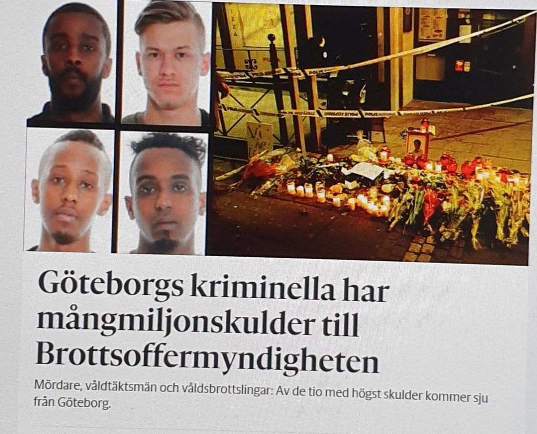 ”Några av Sveriges värsta mördare, våldtäktsmän och våldsbrottslingar har tillsammans skulder på över 100 miljoner kronor för brott de begått mot sina offer. Av de tio kriminella med störst skulder kommer sju från Göteborg.”