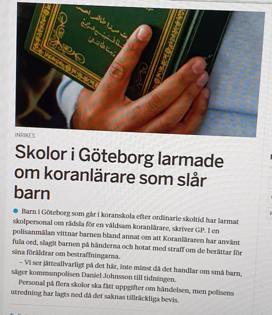 Att barn far illa är också något som vi får vänja oss vid i det nya Sverige – slöjtvång, hedersmord, tvångsäktenskap, könsstympning och så kan vi även lägga till våldsamma koranlärare på listan efter att barn på koranskola i Göteborg larmat om att en lärare utsatt dem för våld samt kränkande behandling.