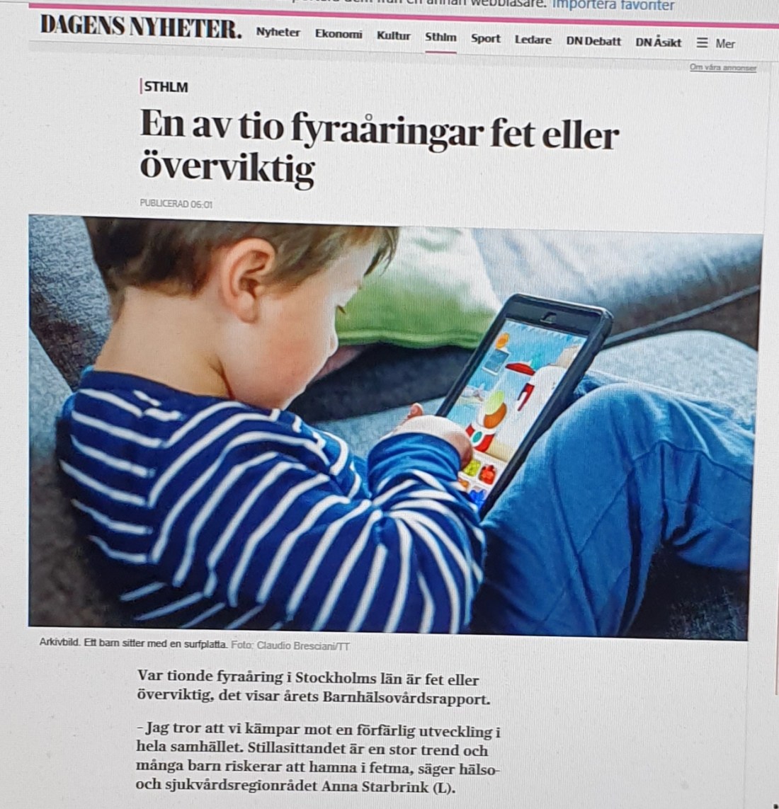 Årets Barnahälsovårdsrapport visar på oroväckande siffror som är oförändrade jämfört med förra året, där alltför mycket stillasittande framför datorskärmar, mobiltelefonskärmar och TV:n i kombination med onyttig kost samt ett överintag av läsk och godis är boven i dramat som genererar svårstoppade hälsoproblem.