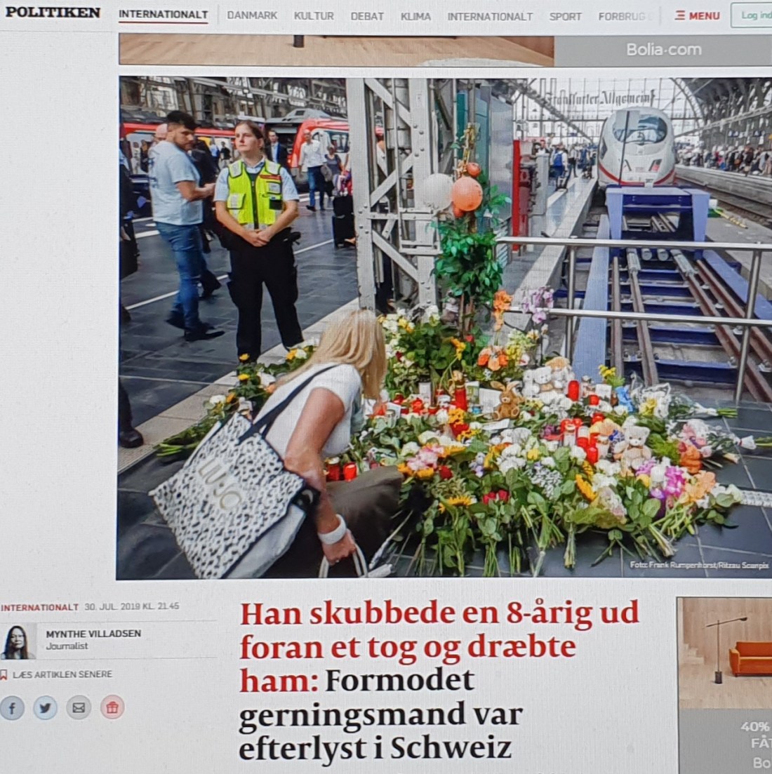 Den eritreanska man som är misstänkt för att ha knuffat en 8-årig pojke och hans mor framför ett höghastighetståg i Frankfurt där pojken sedermera avled, bor i Schweiz och nu visar det sig – föga förvånande – att mannen var efterlyst i Schweiz för våldsbrott.