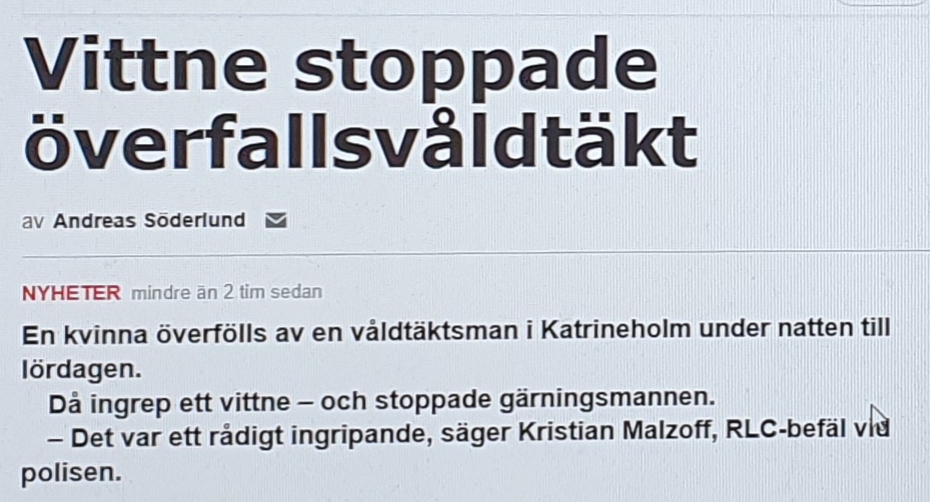Det skedde även ett våldtäktsförsök i centrala Katrineholm, som dock avbröts av ett rådigt vittne och gärningsmannen är nu gripen.