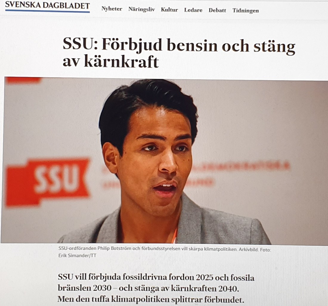 Häromveckan var det Centerpartiets ungdomsförbund CDU som ville slopa byxmyndighetsåldern och för några år sedan ville Liberalernas ungdomsförbund LUF att incest och nekrofili ska tillåtas. Igår deklarerade Socialdemokraternas ungdomsförbund SSU under sin kongress att de vill förbjuda fossildrivna fordon 2025 och fossila bränslen 2030 samt stänga kärnkraften 2040.