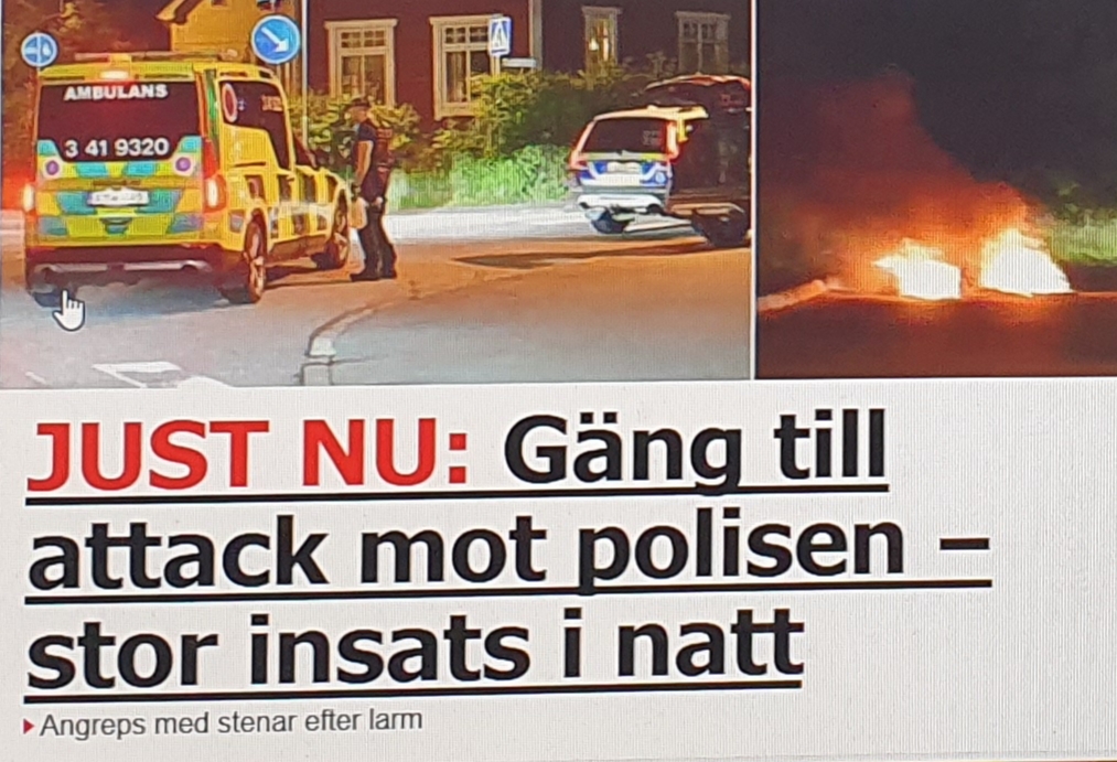 Men i natt var det dags igen och idag skriver Aftonbladet om upploppet i Brandkärr i Nyköping där polisen ryckte ut på ett larm, men möttes av ett gäng på 15-20 personer som kastade sten och brände bildäck. Den första patrullen fick backa undan och begära förstärkning. Ett tiotal polispatruller var kvar hela natten.