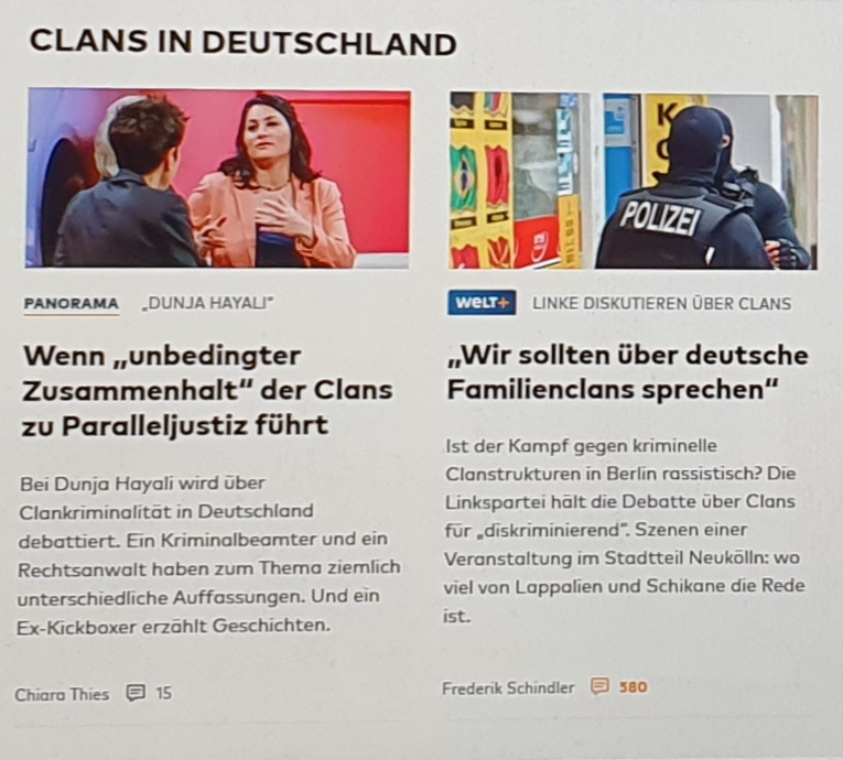I Tyskland har man likt Sverige stora problem med kriminella klaner som styr områden i landet (främst i storstadsregionerna), vilket jag skrivit en del om under året – skillnaden är dock att man kommit lite längre där och vågar diskutera problemen öppet i såväl media som i politikersammanhang. Artiklar som nedanstående från Die Welt går att läsa minst en gång per vecka, vilket ger vid hand att tyskarna erkänt problemet och ämnar bearbeta det. Poliserna gör ofta räder mot familjerna och förstår att det är familjens överhuvuden som man ska klämma åt om man vill komma framåt.