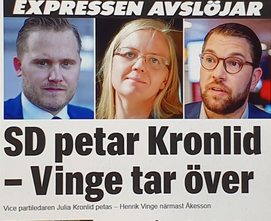 Idag framkommer det dock lite överraskande att Julia Kronlid petas och ersätts av Henrik Vinge. Hur tänkte man där? Kronlid har gjort ett bra jobb och hennes milda men ändå raka framtoning har vägt upp majoriteten av män i partiledningen. Partiet som ofta får kritik för att vara kvinnofientligt hade behövt en kvinna på posten istället för ännu en man, men om Kronlid väljer att gå själv får man respektera beslutet.