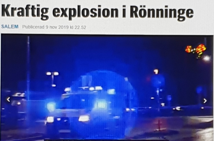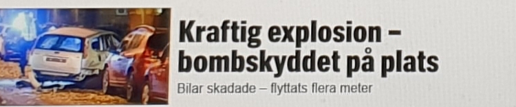 I övrigt inträffade en kraftig explosion vid ett flerfamiljshus i Rönninge utanför Stockholm igår kväll samt en bil brann i Helsingborg efter en hög smäll. Ännu ett uppdrag för nationella bombskyddet! Jag undrar hur många övertidstimmar de arbetat de senaste månaderna?!
