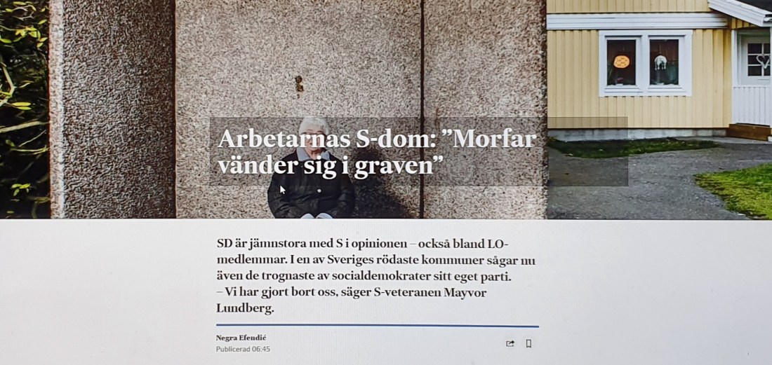 Ska bli intressant att se om siffrorna får ytterligare fart efter att S i Hudiksvall uteslutit Nina Bucchardt en mångårig nämndordförande sedan hon berättat att hon älskade SD riksdagsmannen Johnny Skalin. Hur var det mantrat löd ” allas lika värde”