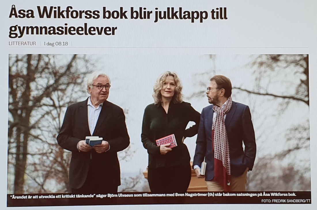 Boken ”Alternativa fakta: om kunskapen och dess fiender” skriven av Åsa Wikforss, professor i teoretisk filosofi, blir årets julklapp till 110.000 gymnasieelever – förutsatt att deras lärare beställer den tillsammans med lärarhandledningen. Björn Ulvaeus och Sven Hagströmer står bakom satsningen genom Fri tanke förlag.