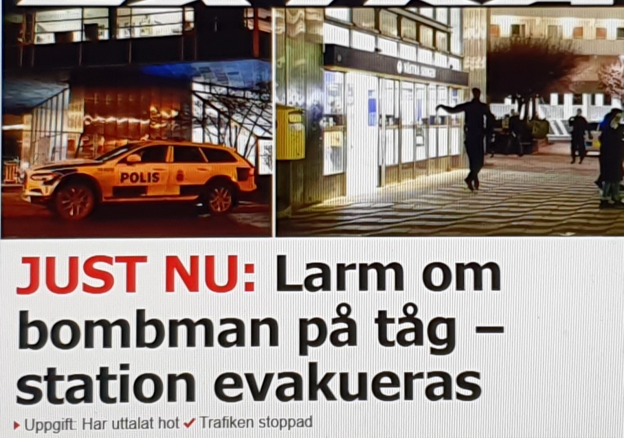 *Tunnelbanan mellan Fridhemsplan och Solna strand/Hallonbergen har stoppats efter order från polisen på grund av att en man uttalat ett bombhot.