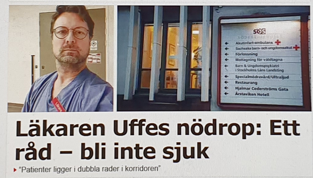 Orden i rubriken härrör från den 57-årige läkaren Uffe Hylin som i helgen skrev om överbeläggningen på Södersjukhuset – en pressad situation som är långt ifrån ny, problemet med överbeläggningar eskalerade redan under julhelgen. Han har ett gott råd: bli inte sjuk!