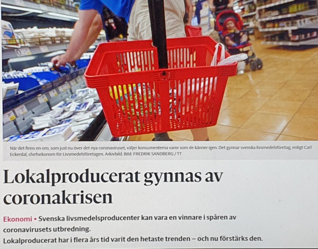 Jag satt precis och funderade över vad vi har i Sverige som är lokalt inom landet och just nu kom jag inte på mer än mjöl,mjölkprodukter,kött och ägg.Det blir en ensidig kost men det får gå.Det positiva med globaliseringen är att viruset sprids med rekordfart,pinan blir förhoppningsvis kort och immunitet uppstår snabbt.Den som lever får se.Det känns som om världen kommer att braka samman.Ja,jag är orolig på allvar.
