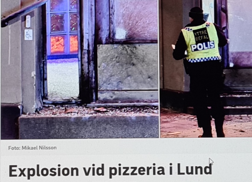 Sprängningar och bränder fortsätter vara en del av vår vardag – igår brann en fritidsgård i Trollhättan ned och byggnaden gick inte att rädda, flera lägenheter i ett flerfamiljshus i Malmö brann igår eftermiddag, eldning i en tunna orsakade omfattande gräsbrand i Falun som spred sig till garage, igår kväll brann en villa ned i Lilla Edet och betecknas som mordbrand och tidigt imorse skedde en explosion inne i en pizzeria i Lund efter att en kraftig fyrverkeripjäs kastats mot pizzerian.