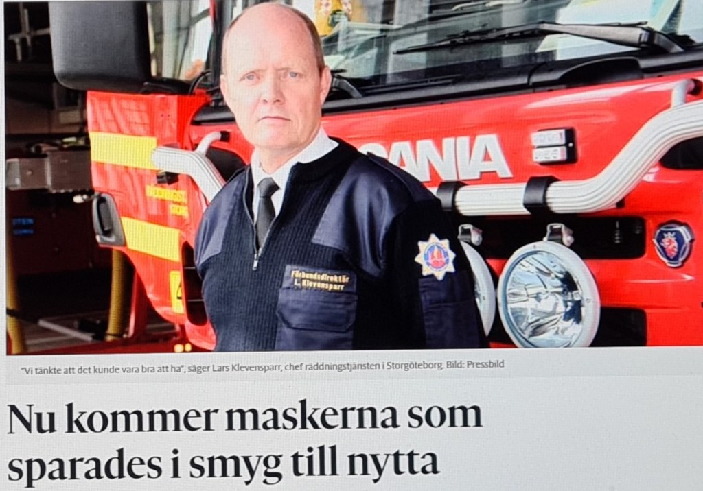 Tack vare att räddningstjänsten struntade i uppmaningen att förstöra hela sitt lager av skyddsmask 90, som för övrigt nyligen utsetts till en av världens bästa skyddsmasker, får bland andra stadens hemtjänst tillgång till dessa säkra masker. Man har även delat ut masker till räddningstjänsten i Göteborg, Alingsås-Vårgårda, Kungälv och Ockerö.