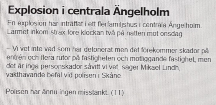 Den organiserade brottsligheten verkar dock inte ha påverkats nämnvärt av krisen och ännu en explosion inträffade vid ett flerfamiljshus i natt, denna gång i Ängelholm.