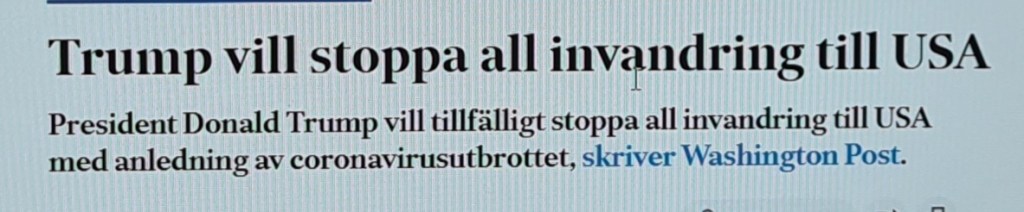 Återigen visar Trump att han värnar om sitt land och sina medborgare på ett sätt som svenska politiker aldrig kommer att komma i närheten av. Givetvis är det mycket klokt att stänga gränsen även för invandrare för att stoppa smittspridningen.