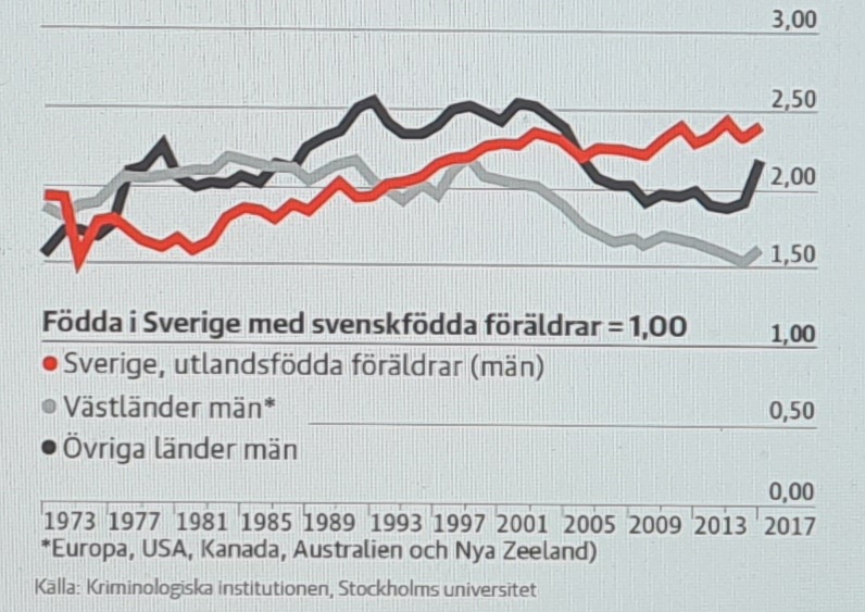 För mig är det uppenbart varför det började stiga i början av 2000-talet, det var nämligen då den oansvariga migrationen från främst MENA började på allvar och när klaner tar med sig sina konflikter till sitt nya land där de unga sugs in i gängkriminalitet blir resultatet därefter.