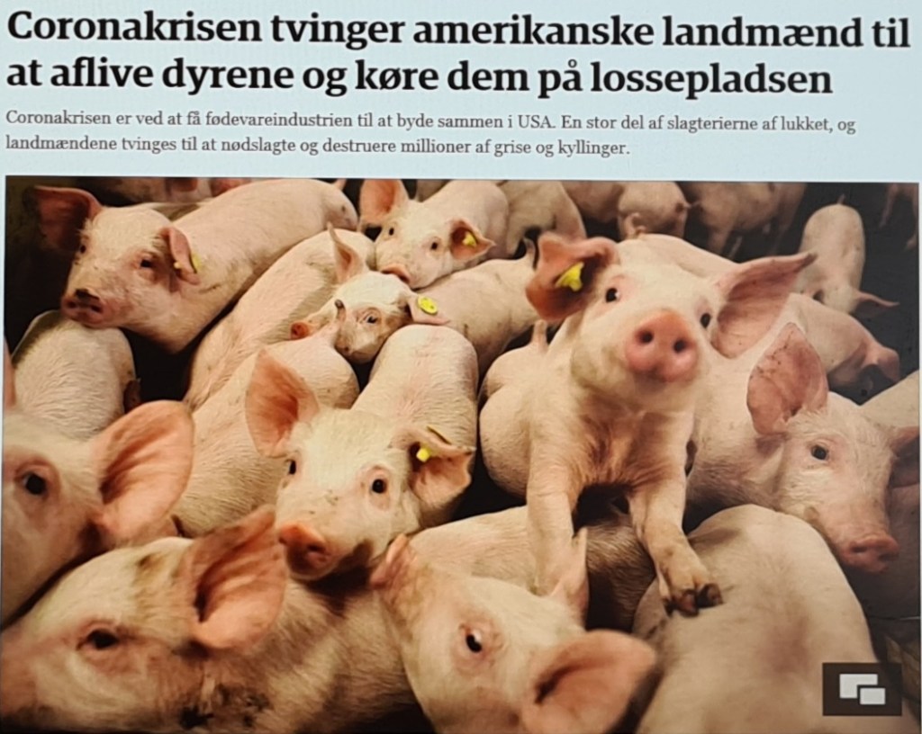 Som jag skrev om nyligen avlivades hundratusentals kycklingar i Iran på grund av foderbrist i coronakrisens fotspår, men matindustrin drabbas även i andra länder. I USA håller köttindustrin på att bryta samman tack vare pandemin där bönder nu tvingas nödslakta miljontals grisar och kycklingar eftersom en stor del av slakterierna är stängda.