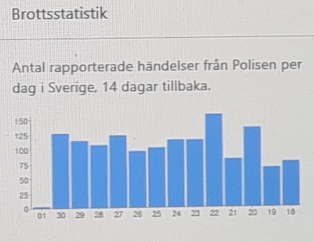 Brottsplatskartan från polisen visar att även det senaste dygnet levererat den vanliga dosen av kriminella handlingar som numera tillhör den svenska vardagen – flera bostadsbränder, misshandel, äldrerån, inbrott, stölder och drogrelaterade brott för att nämna några. Ska man glädjas åt något är det att vi för ovanlighetens skull inte verkar ha haft någon knivhuggning eller skottlossning bland det som inrapporterats så här långt.