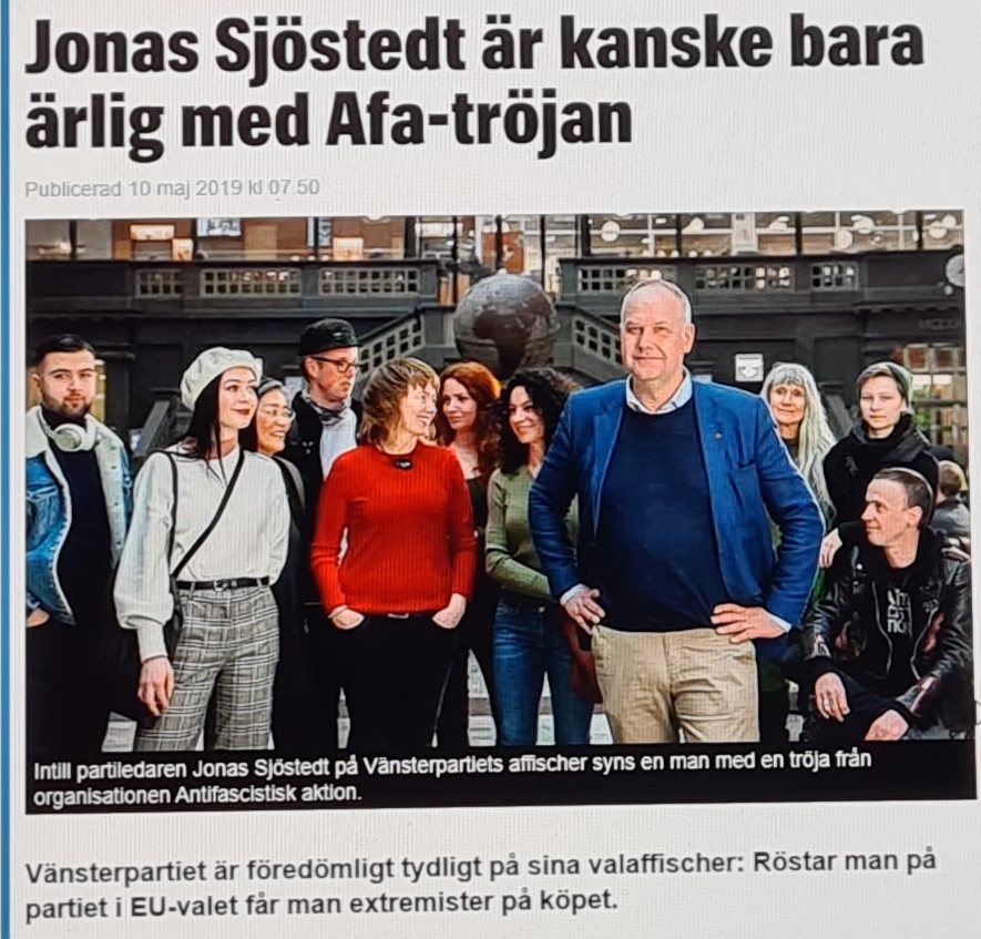 Det är för övrigt väldigt tyst från Vänsterpartiet och Jonas Sjöstedt, men med tanke på att Sjöstedt inför EU-valet 2019 stolt poserade på en valaffisch intill en man i tröja från den militanta organisationen så är det nog inte särskilt konstigt. Kan vara bra för partiets sympatisörer att tänka på inför kommande val – röstar man på partiet får man extremister på köpet.