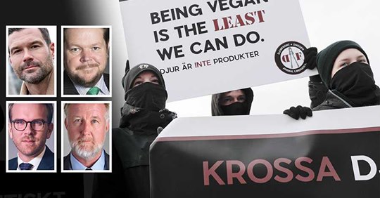 I dagens Aftonbladet har de rättspolitiska talespersonerna från M, C L och KD gjort gemensam sak i ett utmärkt debattinlägg som sätter fokus på våldsbejakande extremistisk djurrättsaktivism som bland annat drabbar lantbrukare, jägare och djurproducerande verksamheter, men som regeringen inte verkar vilja ta tag i.