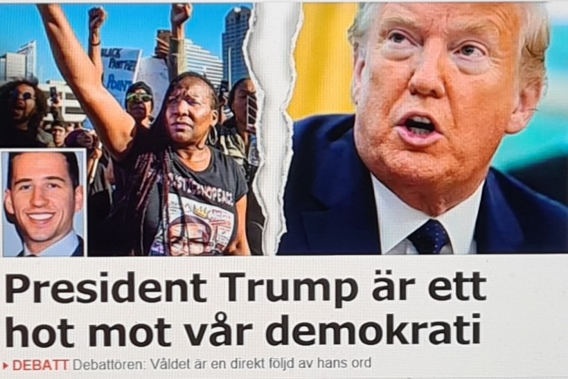 I dagens Aftonbladet Debatt spär man på bilden ytterligare genom att låta den demokratiska politiska konsulten Kevin Holst, som är aktiv i organisationen New Politics, komma till tals och spy galla över president Donald Trump. Bland all dynga han vräker ur sig deklarerar han bland annat att Trump är en tyrann och att våldet som nu sker i USA är Trumps fel.