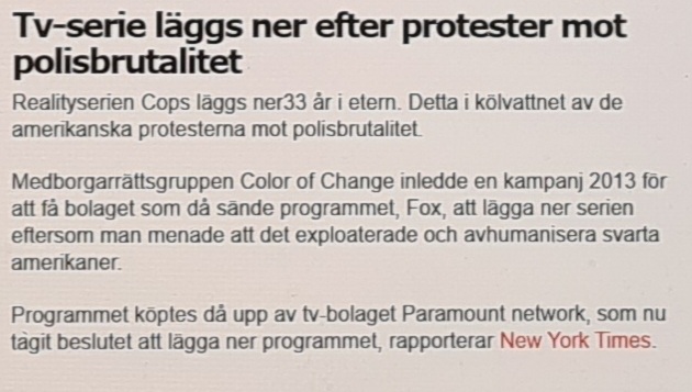 Alltså jag orkar snart inte mer – nu lägger man ner långköraren Cops som sänts i 33 år i amerikansk TV eftersom den sägs exploatera och avhumanisera svarta. 🤦‍♀️😅