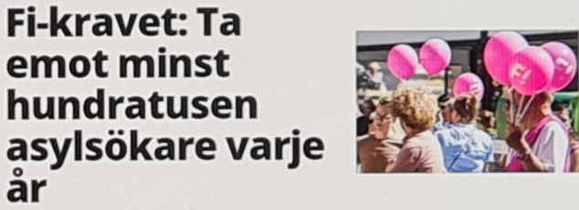 Fi:s ekonomiskpolitiske talesman Martin Jordö skriver i ett inlägg på Twitter att partiet kräver ett ”migrationsgolv” för att vi ska kunna garantera att Sverige tar emot minst 100.000 nya asylansökningar varje år.