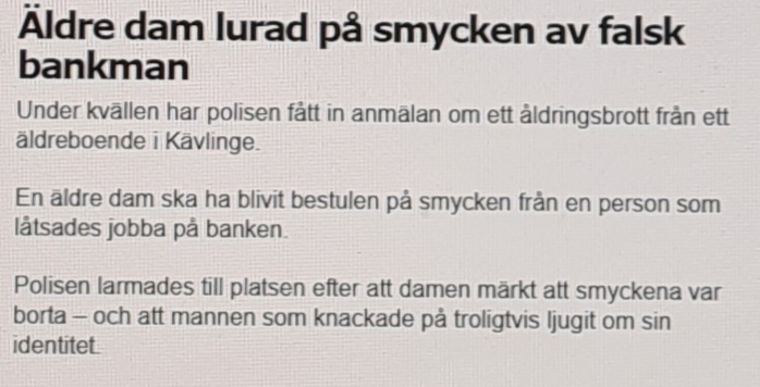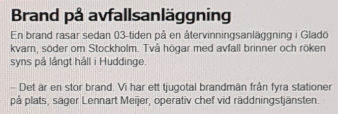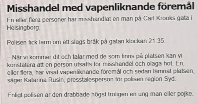 Kvällen och natten har genererat nya brott som kan samlas på hög – storbråk med knivhuggning i Vårby, pojke eller ung man hotad och misshandlad med vapenliknande föremål på öppen gata i Helsingborg, storbrand på avfallsanläggning i Huddinge samt äldre dam i Kävlinge rånad på smycken i sitt hem av bedragare, är några av händelserna.