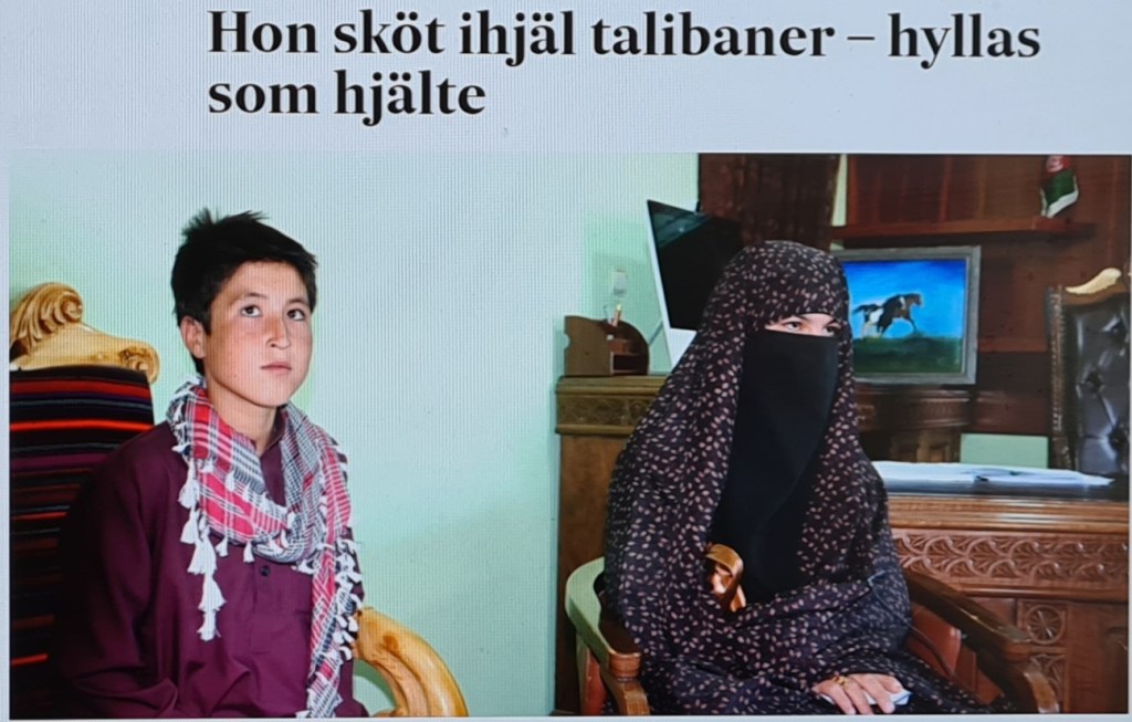 Det första fallet gäller SvD som idag skriver om den afghanska flickan som tillsammans med sin yngre bror sköt ihjäl flera talibaner efter att hennes föräldrar mördats – en historia jag skrev om den 21 juli. Jag använde mig av den bild som spridits på sociala medier där Qamar Gul sitter med enbart slöja och geväret i knä – rejäl girlpower. SVD väljer däremot att publicera en bild av Qamar i niqab, där hon mer ser ut som en förtryckt liten varelse istället för den hjältemodiga flicka hon faktiskt är.