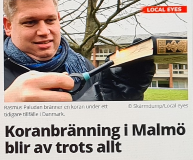 3. Verkligen bra med denna provokation!!! Den sätter fokus på att om vi inte lyder islam så kommer våldet mot oss. Paludan är en synnerligen modig och tänkande person. Vi är invaderade av en främmande kultur som vill sopa bort vårt sätt att leva och som ställer orimliga krav på hur de ska bemötas. Vi var ju för fan här först! Våra fega, omoraliska ledare sviker sitt eget folk, störta dem! Yttrandefriheten finns ju inskriven i grundlagen. Det är själva fundamentet för vårt sätt att leva tillsammans som islam vill ändra på. Heja Danmark, heja Paludan! Länge leve Paludan, vi får se hur länge han lever….