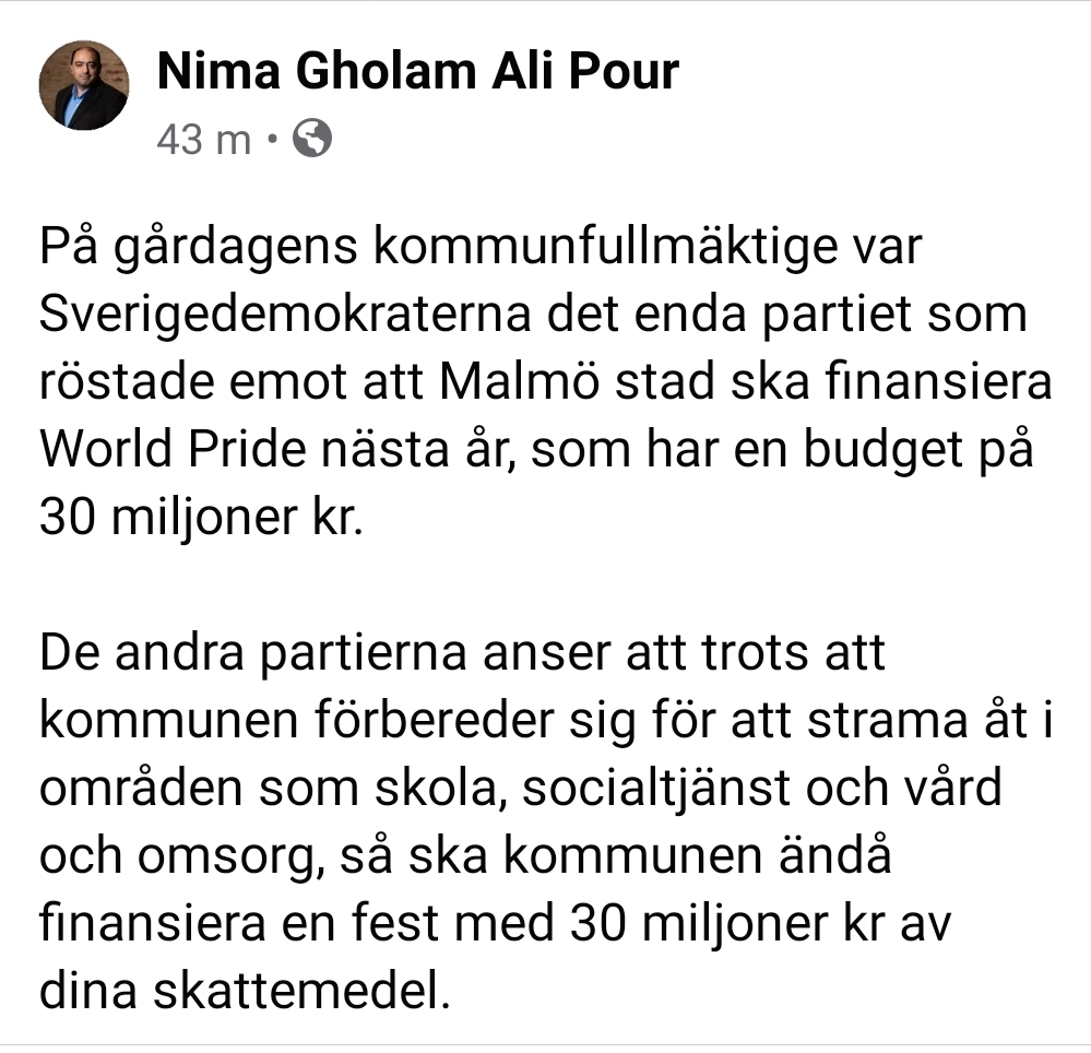14 reaktioner till “Det sparas på skolor, vård och omsorg men Malmös styrande tycker det är befogat att bekosta en pridefest