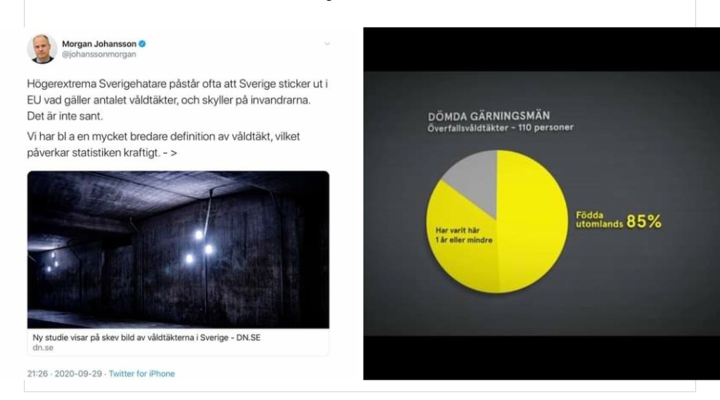 Givetvis är det inte så att alla invandrare är kriminella, men när det sticker ut i statistiken ska man inte hymla utan bör omgående bearbeta problemet. Men enligt minister Johansson är det således annorlunda i Sverige och bara högerextremas svammel. 🤔