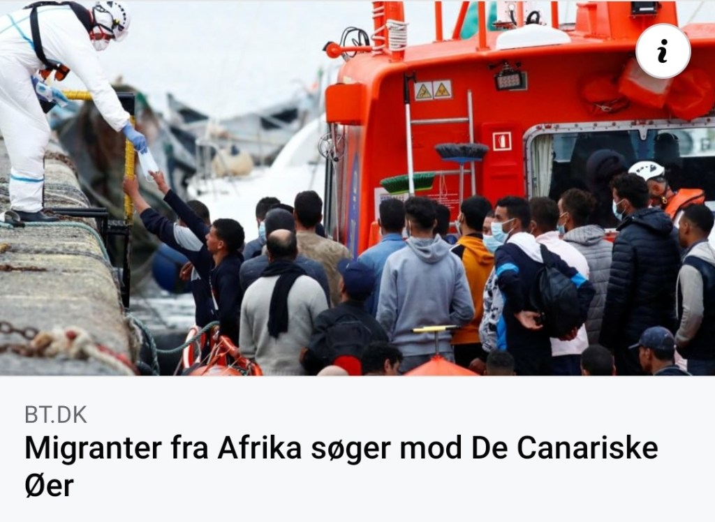 Normalt sett när migranter anländer till Spanien brukar de unga männen snabbt ta sig vidare norrut i Europa, frågan är hur de gör nu eftersom de befinner sig på öar mitt ute i havet och troligen inte har råd med en flygbiljett? Vi får säkert se en solidarisk handling från EU inom kort där alla EU-länder uppmanas att göra en insats och ta emot några av de unga männen och med tanke på den svenska regeringens vridning mot en ännu mer generös migrationspolitik där man tydligt deklarerat att den humanitära stormakten kommer att fortsätta stå upp för asylrätten, så kommer vi garanterat att erbjuda plats.