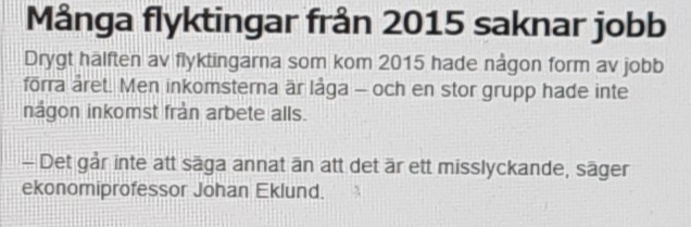 Ja det är verkligen ett kapitalt misslyckande från våra makthavares sida, men det kommer vi aldrig få höra dessa syltryggar yppa överhuvudtaget. Istället ska man fortsätta med samma oansvariga politik och ta in tiotusentals nya migranter om året samt deras anhöriga som ska placeras i utanförskap, varav majoriteten aldrig kommer komma i arbete utan försörjas av allt för få arbetande skattebetalare.🤦♀️