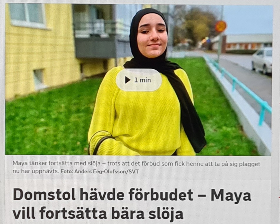 Dagen efter Förvaltningsrättens beslut om att ogiltigförklara Skurups kommuns slöjförbud i skola och förskola, publicerar propagandaorganet SVT ännu ett reportage som är pro-hijab. Det är Maya som går på högstadiet i Skurup och på grund av förbudet valt att börja bära hijab i protest mot beslutet, som återigen får komma till tals samt föra fram sina åsikter om det positiva med att skapa en barriär genom sitt val att täcka sig