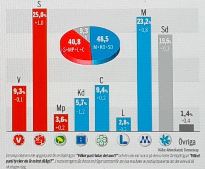 Jag håller med om att det överlag ser mörkt ut, men man får glädjas åt det lilla – som att MP o L ligger under spärren.