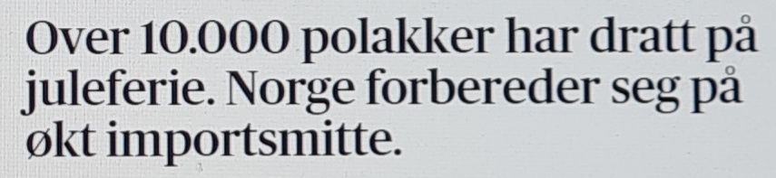 I samband med julledigheten har nu tusentals polacker åkt till hemlandet för att fira jul och efter nyår återvänder över 10.000 från Polen, vilket troligen kommer att ge ökade smittotal. Nu förbereder man sig för vad som komma skall i Norge.