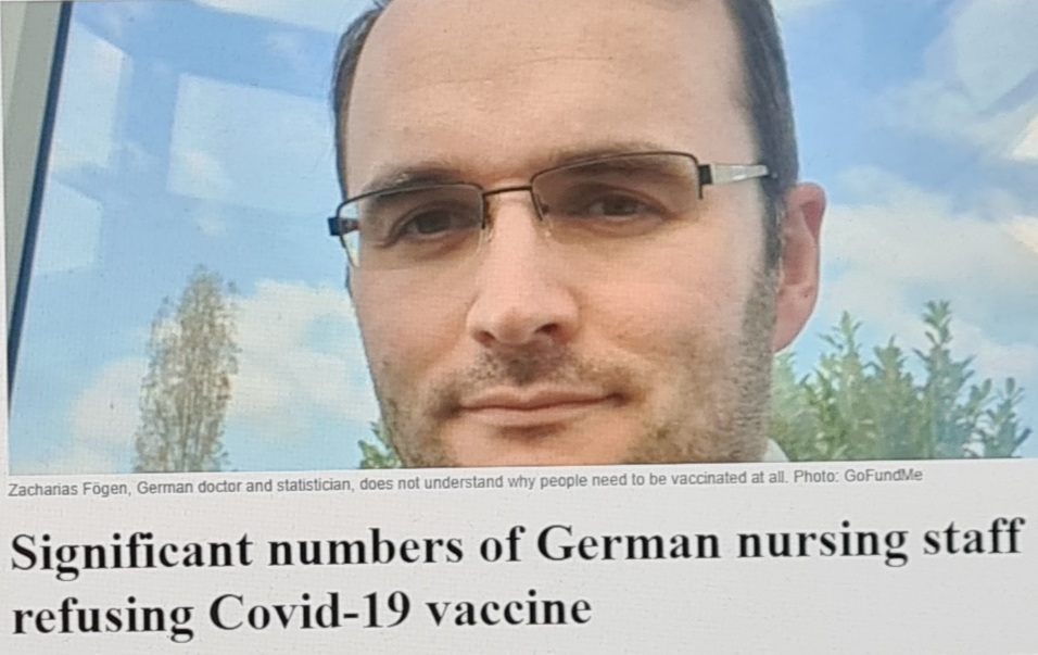 Den tyska tidningen Spiegel citerar information från ”Association of Statutory Health Insurance Physicians” och enligt rapporten är rädslan för vaccin vanlig i vårdsektorn där ingen vill vara försökskanin. Detta till trots att den tyska hälsoministern Jens Spahn har arbetat hårt för att sälja in vaccinet och på en presskonferens i Berlin nyligen uttryckte ministern att det är en fråga om sunt förnuft, att det handlar om att skydda människor man tar hand om samt att människor som arbetar inom sjukvården har ett särskilt ansvar.