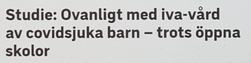 Av nästan två miljoner svenska 1-16 åringar var det enbart 15 barn som vårdades för covid-19 eller MIS-C inom intensivvården under våren 2020, vilket är 1 per 130.000 barn.