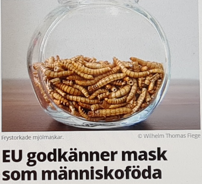 Den svenska bidragsmyndigheten Vinnova är en av de myndigheter som tidigare lyft fram mjölmasken som ett ”klimatsmart” proteinalternativ till vanlig mat och i våras tog Högskolan Kristianstad fram en klimatsmart kokbok där maskar och andra insekter beskrivs som en ”kulinarisk delikatess”.