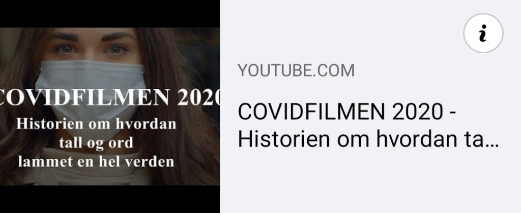 En norsk film som riktar skarp kritik mot hälsomyndigheter och medias framställning av coronapandemin har enligt Aftenposten den senaste veckan fått över 90.000 visningar på Youtube. Filmen med titeln ”Covidfilmen 2020 – Historien om hvordan tall og ord lammet en hel verden” säger sig utgå från fakta och hävdar bland annat att vi inte kan lita på coronatester, är kritisk till om pandemin är så dödlig som det hävdas och menar att prognoserna inte har införlivats. Det hävdas också att WHO har lurats om definitionen av en pandemi samt man belyser också riskerna med det nya mRNA-vaccinet.
