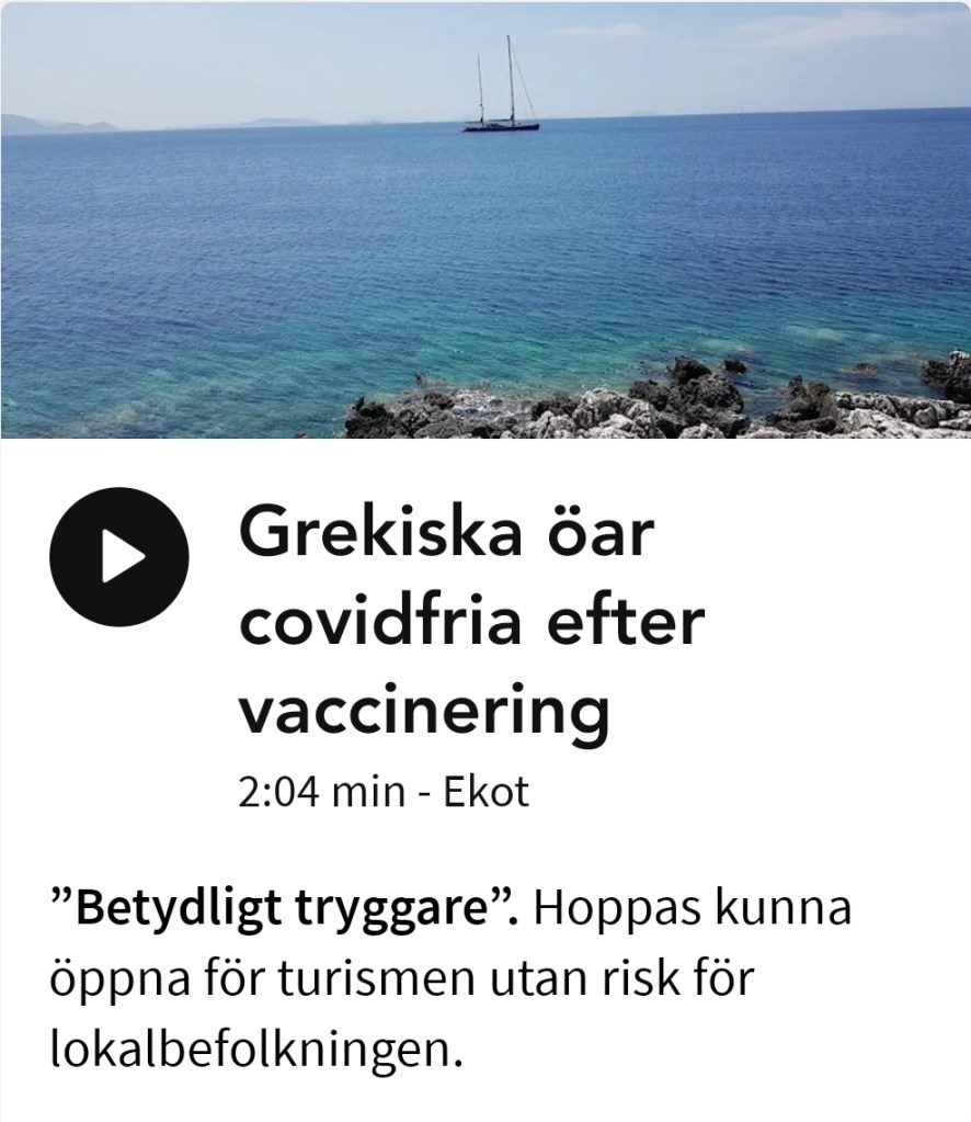 Är det fortfarande första april hos Sveriges Radio eller är det bara jag som ser problemen med att viruset muterar hela tiden och de turister som kommer till öarna mycket väl kan föra med sig ett muterat virus – för att inte tala om alla illegala migranter som varje vecka tar sig till de Egeiska öarna utan att vara vaccinerade?! 🤦♀️🙃