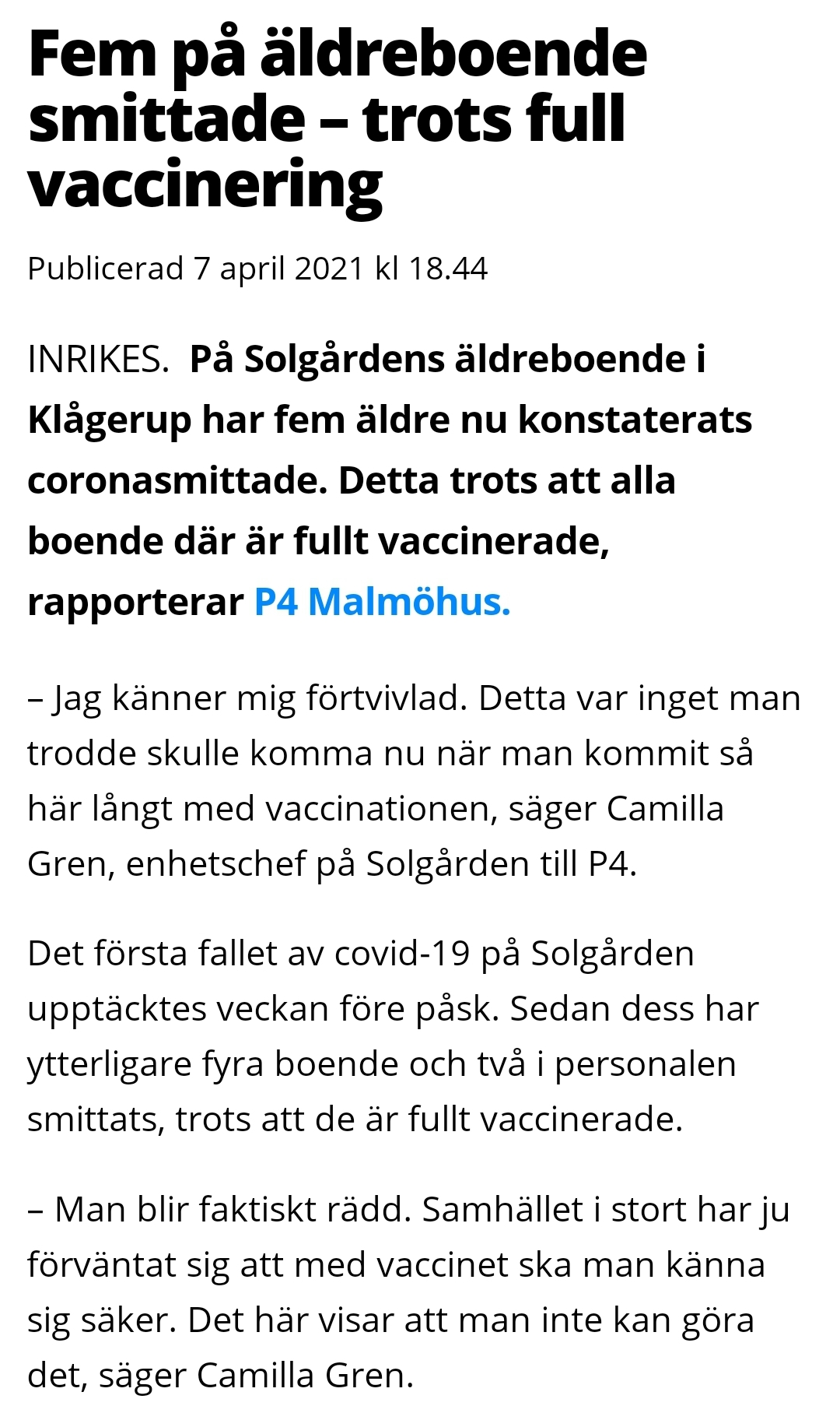 Dom här har garanterat fått sockervatten i sprutan för att inte statistiken ska dra iväg https://www.friatider.se/fem-pa-aldreboende-smittade-trots-full-vaccinering