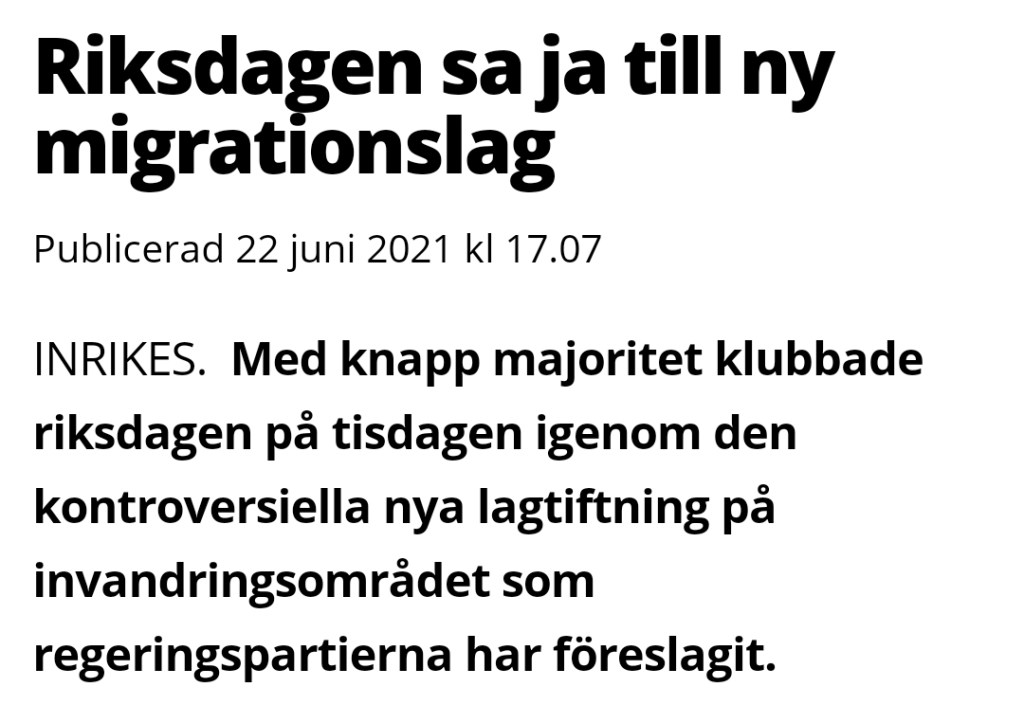 Efter 9 timmar på Liseberg är man ganska mör och i dag orkar jag inte gå igenom nyhetsflödet, men noterar indignerat att regeringen enligt plan fick igenom sin nya kontroversiella migrationslagtiftning som redan ska börja gälla den 20 juli. Detta innebär att vi kommer öka på invandringen ytterligare eftersom det med den nya lagstiftningen blir möjligt att bevilja uppehållstillstånd på grund av anknytning till en person som har tidsbegränsat uppehållstillstånd samtidigt som en vuxen person som har vistats i Sverige med uppehållstillstånd och under tiden fått en särskild anknytning till Sverige också ska kunna beviljas uppehållstillstånd om omständigheterna är ”särskilt ömmande” – det vill säga gräddfil för exempelvis de ensamkommande afghanerna som tidigare saknat legala skyddsskäl.