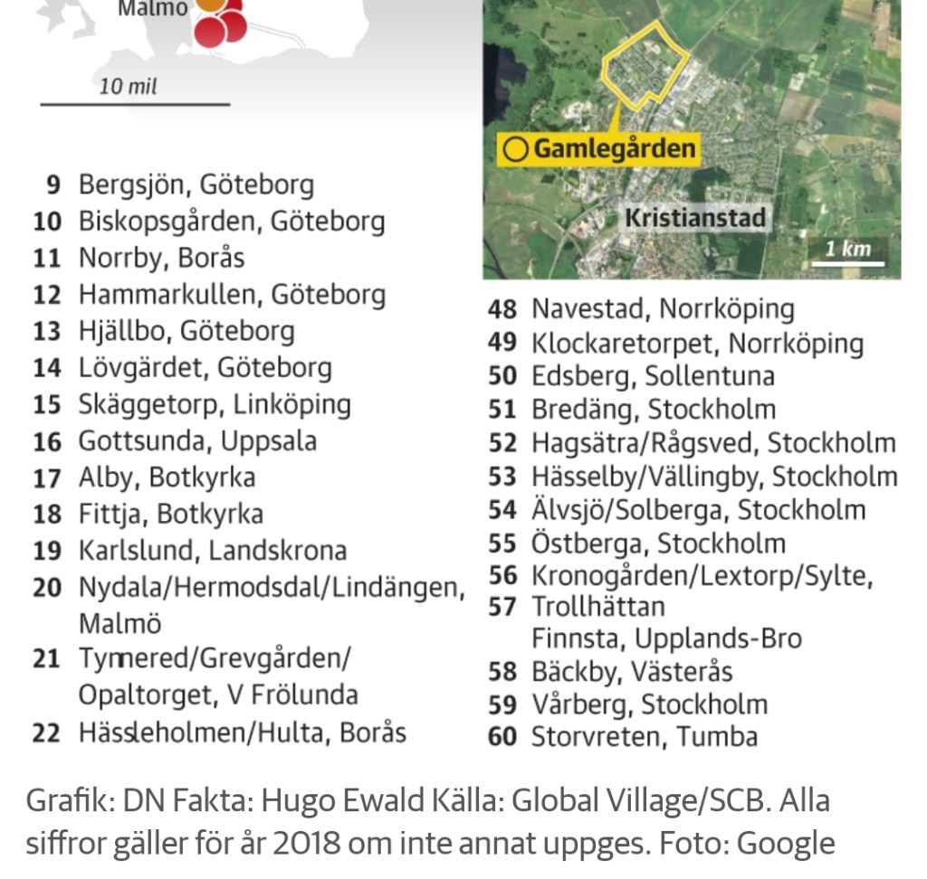 Läsvärt och eftersom DN i regel låser sina artiklar under förmiddagen har jag bifogat artikeln i sin helhet nedan. Bilderna visar också de utsatta områdena samt andelen arbetslösa samt med utländsk härkomst – dock inga nyheter för någon.