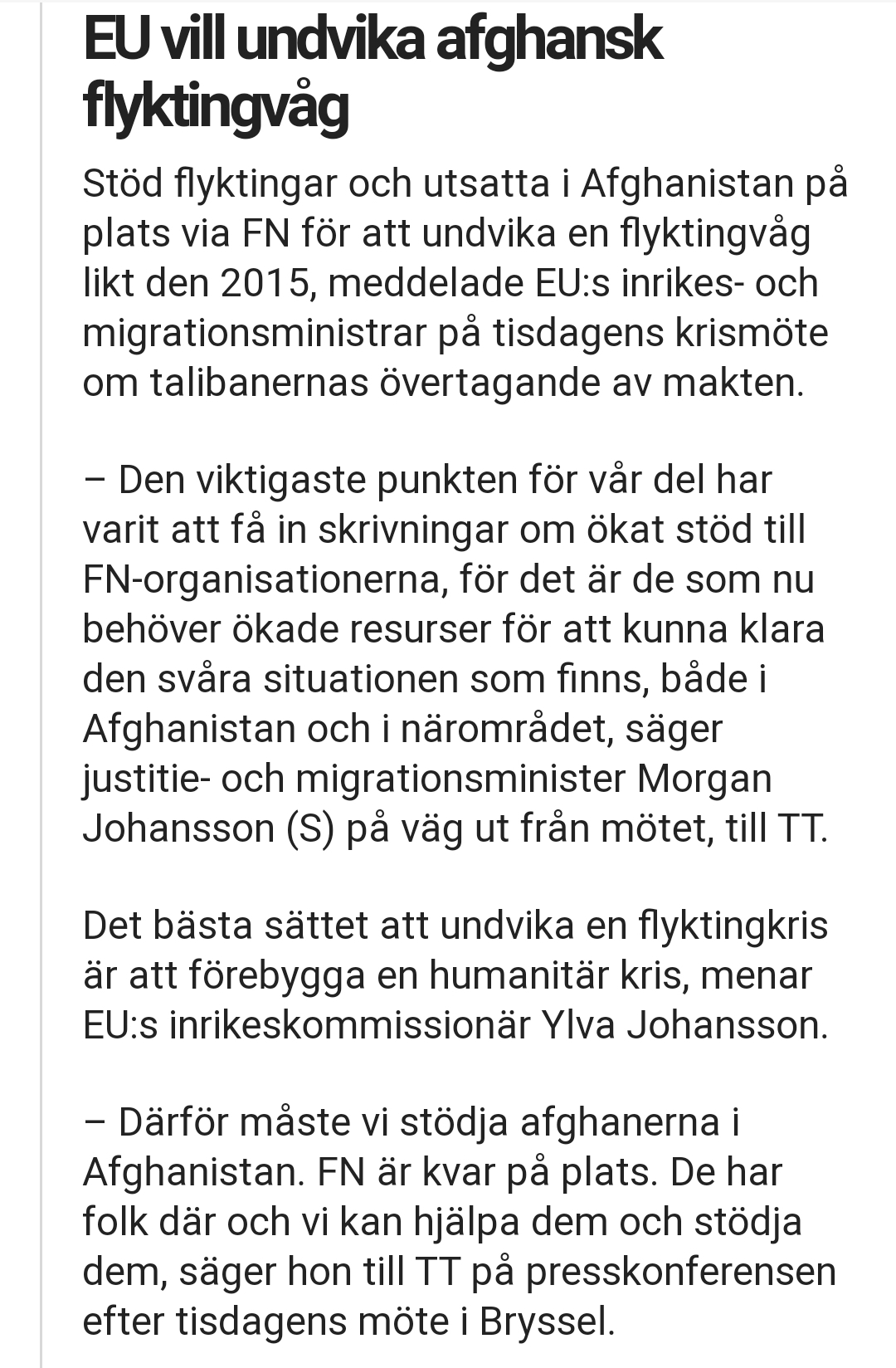 Morgan Johansson och Ylva Johansson står nu alltså och orerar om att det bästa för att undvika en humanitär kris är att hjälpa människor på plats i Afghanistan och i närområdet, men när SD sagt samma sak i decennier har de klassificerats som nazister och rasister med fascistisk människosyn i ett brunt parti. Inte lite hyckleri från Socialdemokraterna – ”it’s ok when we do it”.