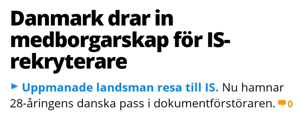 Varför diskuteras inte detta mer i Sverige och varför ligger inte redan ett aktivt förslag om att kunna dra in medborgarskap på regeringens bord? Hur länge till ska befolkningen acceptera att landet styrs av välavlönade syltryggar? Medan andra länder agerar står vi och tittar på medan extremisterna fortsätter vinna mark. Beklagligt och tyvärr tror jag inte att det finns politisk majoritet för en nödvändig lagändring i det godhetsknarkande riket i norr.