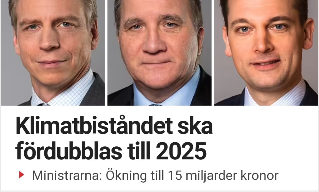 I dag gjorde statsminister Stefan Löfvén tillsammans med miljö- och klimatminister Per Bolund samt biståndsminister Per Olsson Fridh ett gemensamt utspel i en debattartikel i Aftonbladet, där man proklamerade att det svenska så kallade ”klimatbiståndet” ska fördubblas till år 2025.