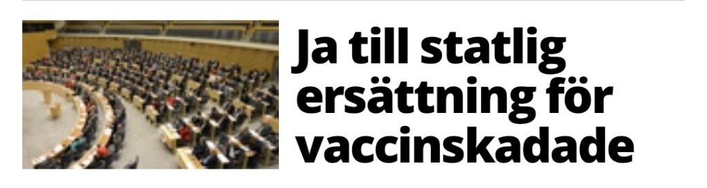 I dag röstade riksdagen igenom ett förslag om ”statlig ersättning” för skador som orsakas av coronavaccin där personen inte får ersättning från den ordinarie läkemedelsförsäkringen. En enskild individ som drabbats av skadliga biverkningar kan få upp till tio miljoner kronor enligt den nya lagen.